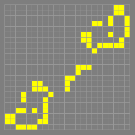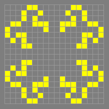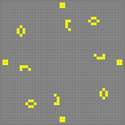 Any live cell with two or three live neighbours survives. Any dead cell with three live neighbours becomes a live cell. All other live cells die in the next generation. Similarly, all other dead cells stay dead.
